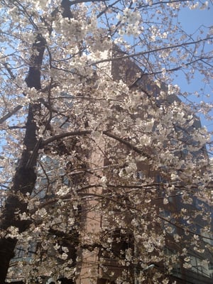 リンクのビルの前にあるこの立派なさくらの木がついに花を咲かせました。